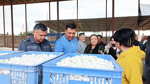 Чортоқ туманида пилла теримининг дастлабки ҳосили тарозидан ўтказилиб, хирмонга барака тиланди.