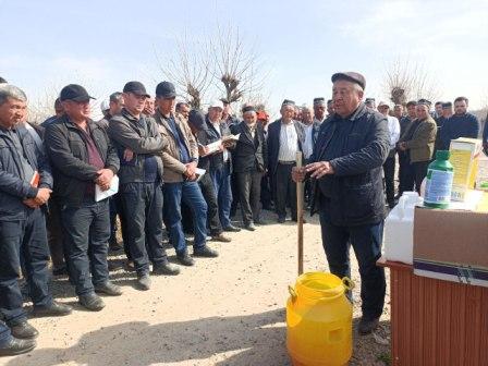Чортоқ тумани "Мучум Кесканёр тех сервис" ММТП ҳудудидаги “Шуҳрат Бахром Козим” фермер хўжалигида ғалла ҳосилини парваришлашда суспензия, гербицид ва фунгицидлар билан ишлов бериш ҳамда чигит экиш учун ер текислаш, пушта олиш ишларининг бориши бўйича кўргазмали семинар йиғилиши ўтказилди.