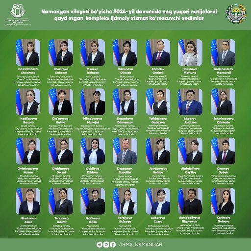 2024 йил давомида фаолиятида энг юқори натижаларни қайд этган Наманган вилоятидаги ҳудудларда комплекс ижтимоий хизмат кўрсатувчи ходимлар аниқланди.